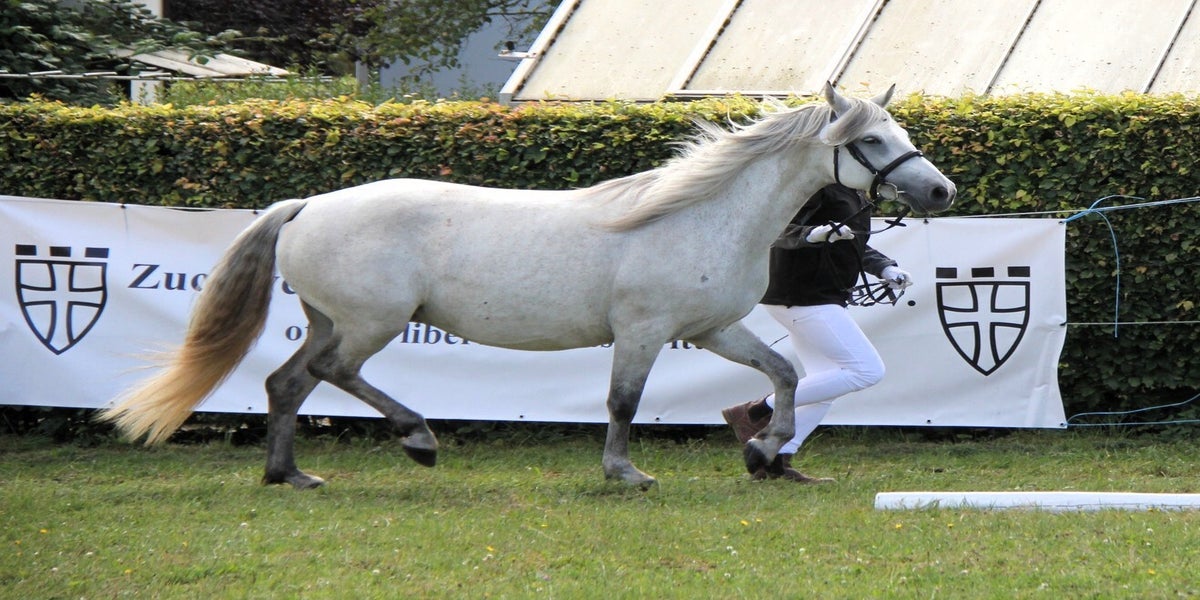 Unsere Connemara-Stute Niamh Thornton begeisterte am 15. September 2024 beim ZfdP Stute- und Fohlenchampionat Baden-Württemberg und sicherte sich den Titel Reservesiegerin in der Klasse Stuten anderer Rassen! Mit ihrer perfekten Balance, eleganten Bewegung und beeindruckenden Präsenz setzte sie ein klares Zeichen für die herausragende Qualität unserer Connemaras.