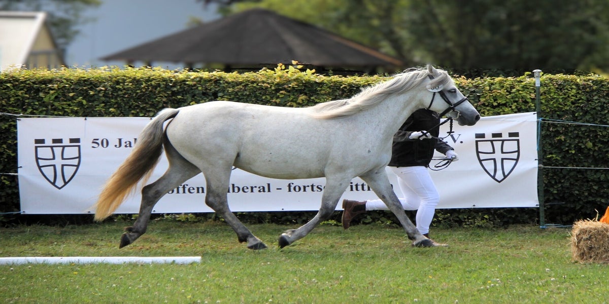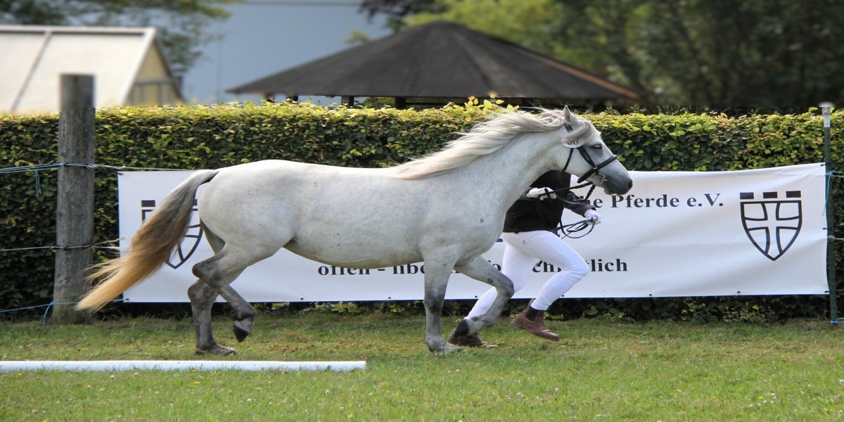 Unsere Connemara-Stute Niamh Thornton begeisterte am 15. September 2024 beim ZfdP Stute- und Fohlenchampionat Baden-Württemberg und sicherte sich den Titel Reservesiegerin in der Klasse Stuten anderer Rassen! Mit ihrer perfekten Balance, eleganten Bewegung und beeindruckenden Präsenz setzte sie ein klares Zeichen für die herausragende Qualität unserer Connemaras.